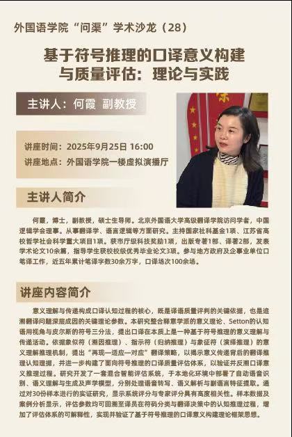 “问渠”学术沙龙:基于符号推理的口译意义构建与质量评估:理论与实践
