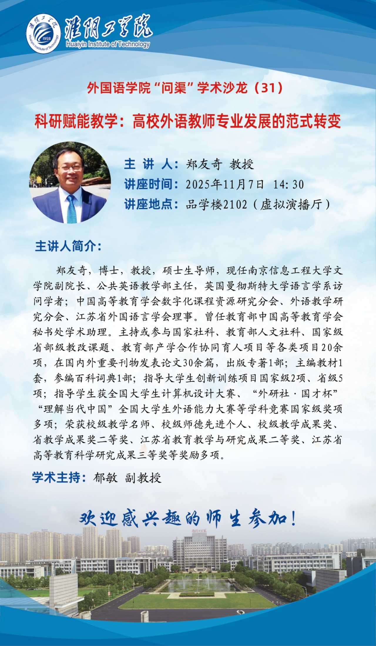 “问渠”学术沙龙:科研赋能教学——高校外语教师专业发展的范式转变